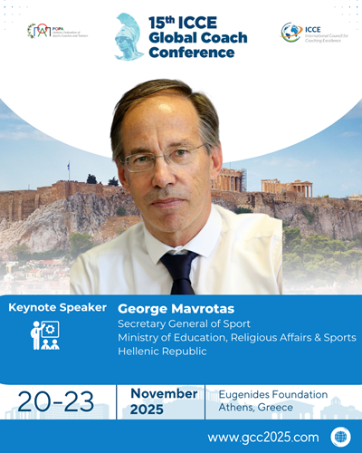 It is with immense pride and anticipation that I extend a warm welcome to the 15th ICCE Global Coach Conference. As President of the Hellenic Federation of Sports Coaches and Trainers, I am honored to host this gathering of global coaching excellence in the historic city of Athens, from November 20-23, 2025.